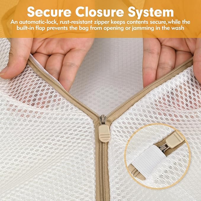 - Durable and reusable structure: Featuring a double-layer fine mesh, reinforced stitching and anti-rust zipper, it can be reused in various washing cycles and water temperatures.