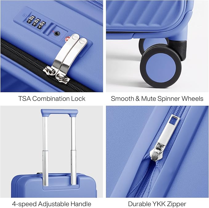 - 【Quality Accessories】High-precision dual-row spinner wheels are durable and smooth, adaptable to various surfaces including cobblestone roads and carpets. YKK brand zipper designed for long term use; TSA combination lock can easily pass most international countries customs security check without damaged the suitcase