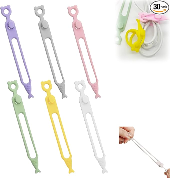 - 【Cord Organizer Essentials】Choose from 6, 12, 18, 24, or 30-pack sets—each with 6 colors. Mix and match based on your preference to organize cables (or more!) effortlessly. If you need reliable silicone cable ties, this is the set for you.