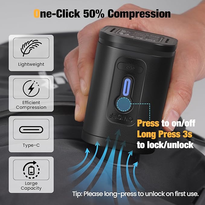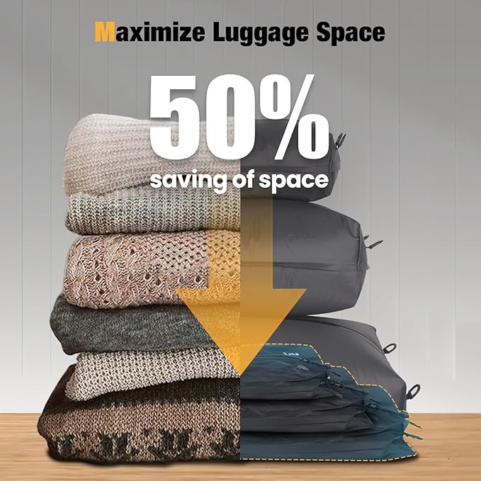 - 【Vacuum Pump for Fast Compression】Achieve quick compression in seconds with the included wireless pump. A single charge supports up to 20 uses, making your packing routine faster, lighter, and stress-free—wherever your travels take you.