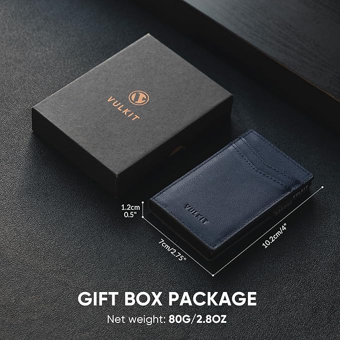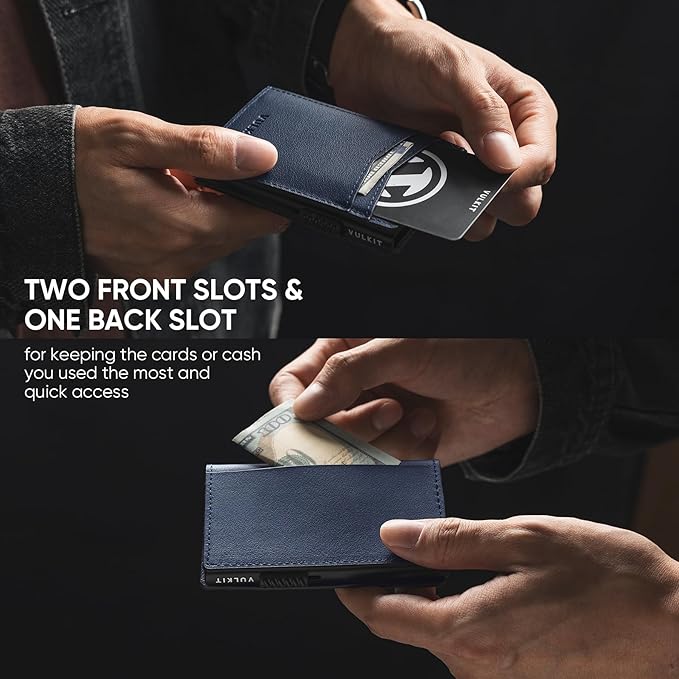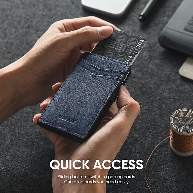 VULKIT Men's Slim Wallet Pop Up Card Holder RFID Blocking Metal Wallet Minimalist Design Holds Up to 11 Cards, Nappa Leather