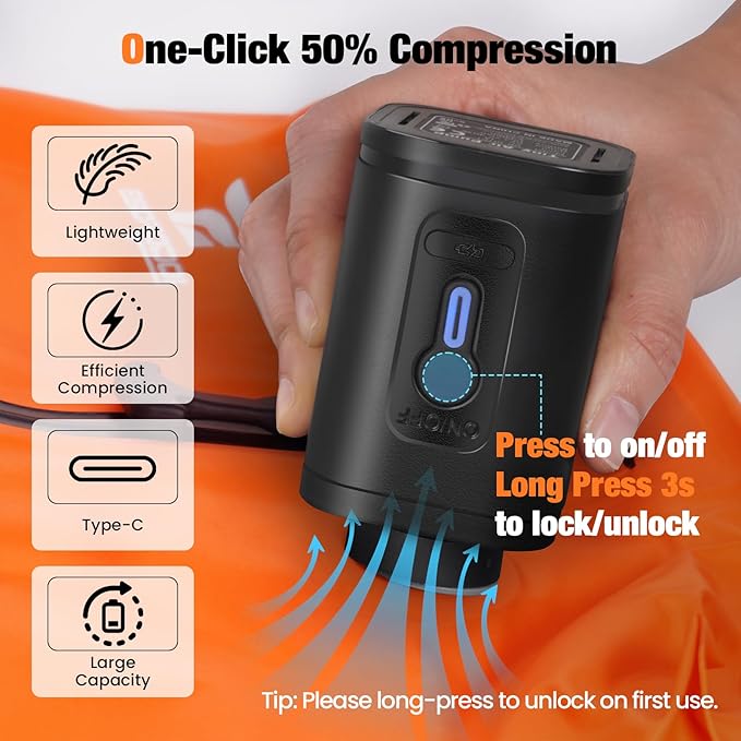 - 【Vacuum Pump for Fast Compression】Achieve quick compression in seconds with the included wireless pump. A single charge supports up to 20 uses, making your packing routine faster, lighter, and stress-free—wherever your travels take you.