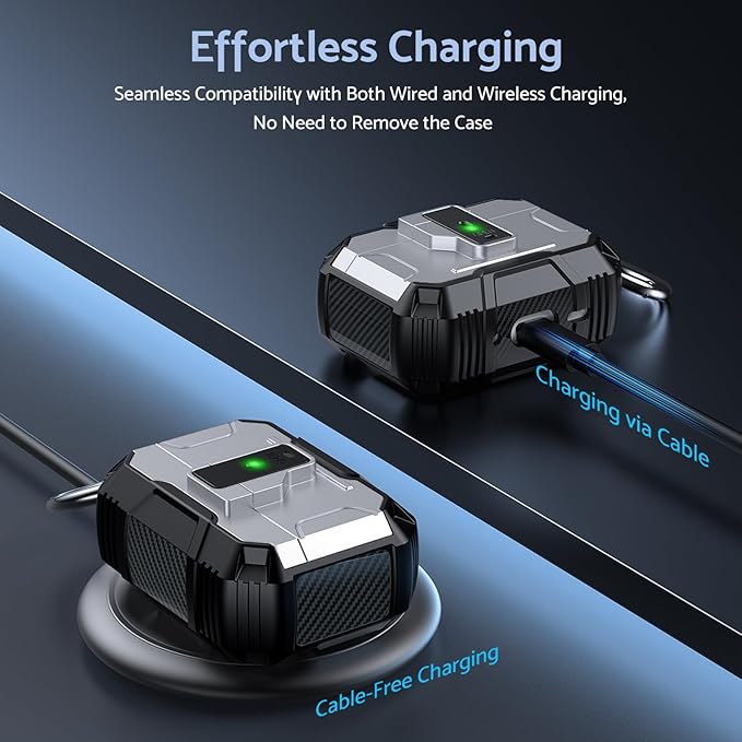 - Convenient Charging: The case supports both wired and wireless charging for your Airpods Pro 3 case. The front LED remains visible to show the charging status. An included portable carabiner allows you to conveniently take your Airpods Pro 3 case with you during outdoor activities like climbing, hiking, and travelling.