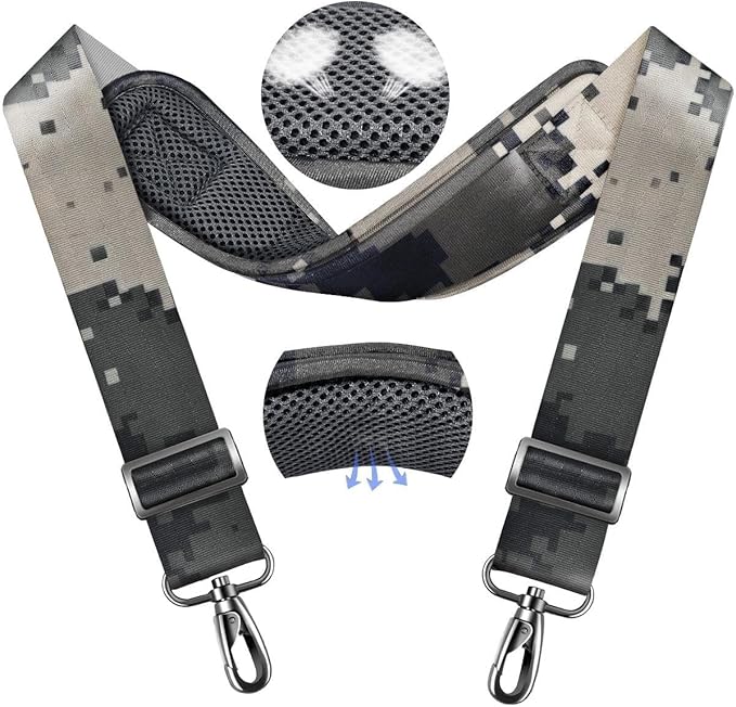 ZINZ 79.5" Universal Strap with Ultra-Thick Fixed Breathable Pad - Adjustable Heavy-Duty Shoulder Strap for Laptop, Crossbody, Luggage, Gym, Camera Bag and More,Camouflage Gray