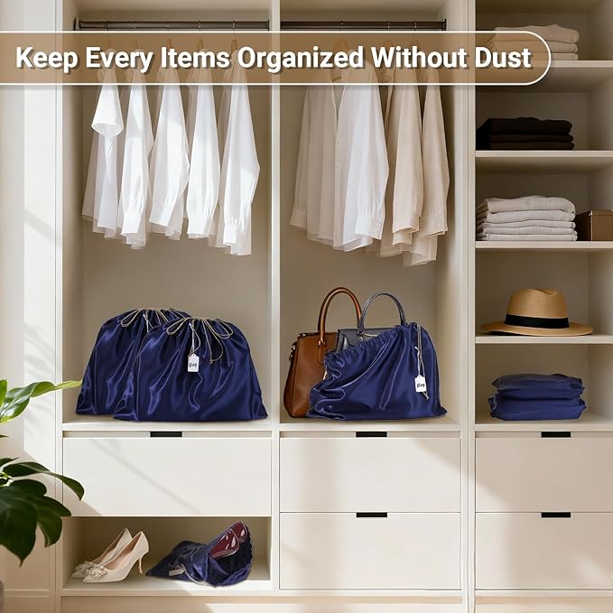 - Easy to store: Set of 7 dust bags(each 19.6x15.7in/50x40cm), easily storing your handbags, shoes, purses, pouches, accessories, which are ideal for placing them for long-lasting time.