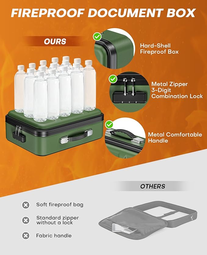 - 【Hard-Shell Box Design】As a reliable fire box safe for documents, it features a thick hard shell that resists daily wear, drops, and impacts. Unlike flimsy soft cases, this hard shell maintains its shape long-term—preventing papers from creasing or being crushed