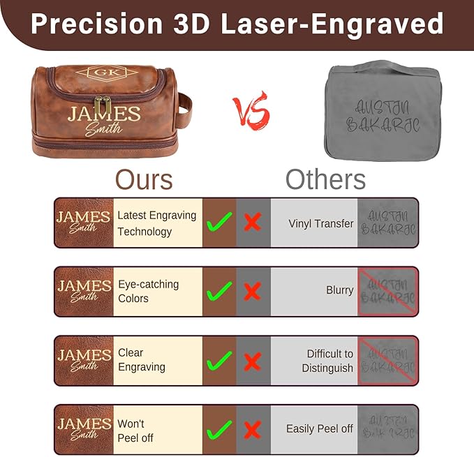 - 【Personalized Customization】Uniquely Yours -Create a one-of-a-kind design with double-sided customization (top + front) across four classic color options. Add names, monograms, or custom text for a bespoke touch. Handcrafted details elevate it into a luxury men toiletry travel bag that blends practicality with sentimental value