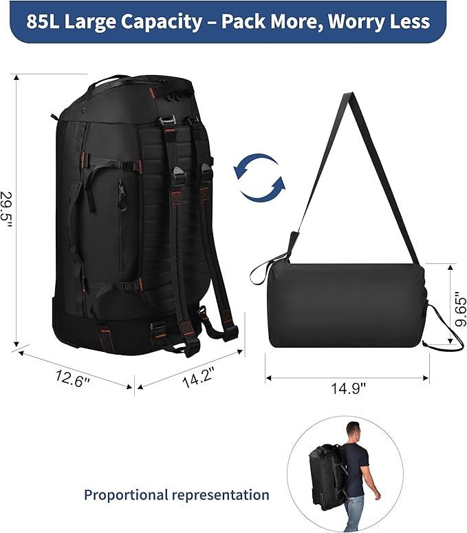 - EXTRA LARGE YET FOLDABLE DESIGN 86L capacity (30”) yet fully collapsible for compact storage in the included pouch—ideal for camping, moving, or TSA-approved travel when space matters.