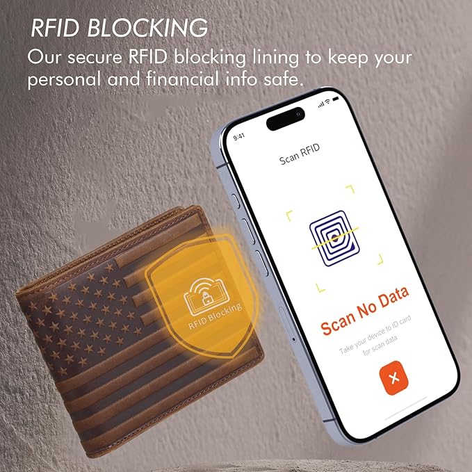 - RFID Blocking Protection: Equipped with a metal composite lining, this rfid wallet for men keeps your personal and financial info safe. As a reliable rfid blocking wallet, it prevents unauthorized scans of credit cards, IDs, and smart cards.