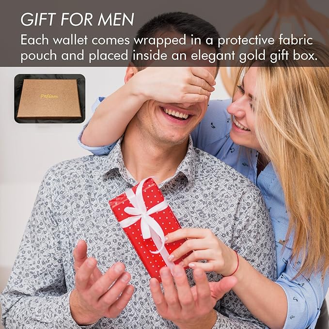 - Perfect Gift for Him: Elevate your gifting with this exquisite mens leather wallet—the quintessential mens gift that masterfully blends timeless style with everyday function. This sophisticated wallet for men arrives ready to dazzle, meticulously presented in a soft fabric pouch and a premium gold gift box. It's more than a wallet for men; it's an experience designed to impress from the very first glance. As the perfect gift for him, it's an unforgettable choice for birthdays, Father's Day, anniversaries, or Christmas, delivering premium quality he'll appreciate every day.