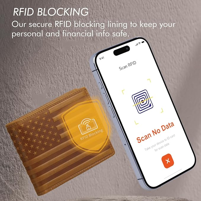 - RFID Blocking Protection: Equipped with a metal composite lining, this rfid wallet for men keeps your personal and financial info safe. As a reliable rfid blocking wallet, it prevents unauthorized scans of credit cards, IDs, and smart cards.