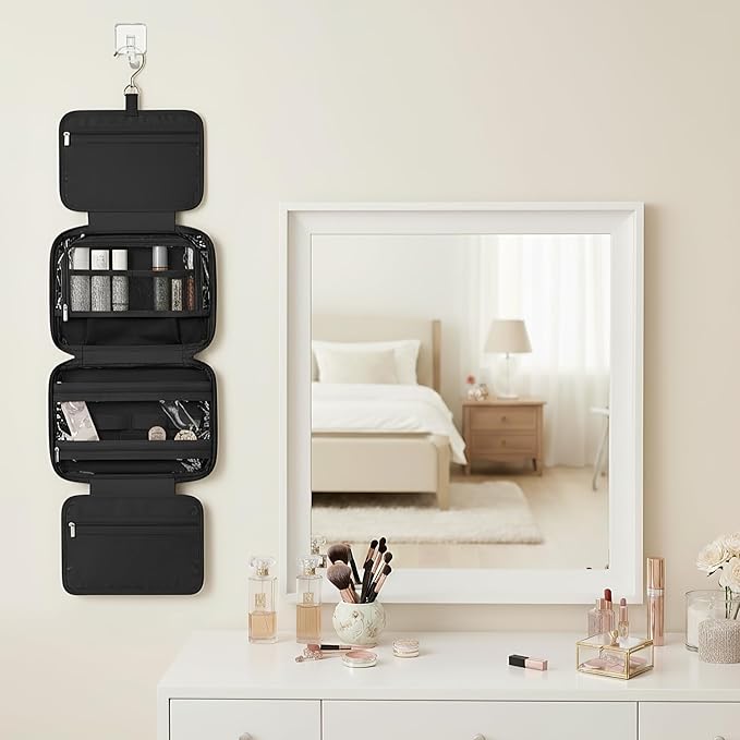 - Multi-Layered & Versatile Storage:Features multiple compartments and transparent pockets, ideal for organizing jewelry, cosmetics, sunscreen, facial cleanser, shampoo, conditioner, soap and more, keeping everything neatly separated and easy to find.