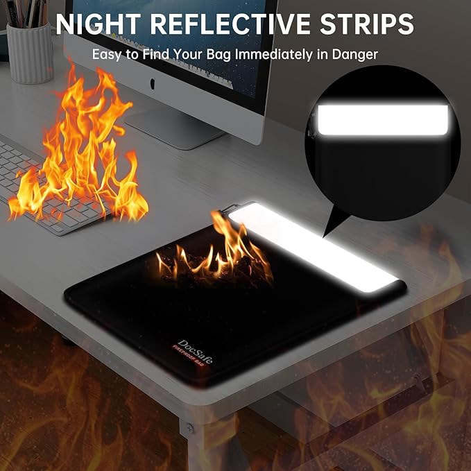 - Durable, Foldable Portable: The sealed zipper is water-resistant, capable of withstanding direct jets of water from a fire hose. The combination of a hook-and-loop flap and a zipper provides dual protection. The reflective strip ensures you can quickly locate the fireproof document bag even in total darkness. In a fire, every second counts. Our goal is to help you swiftly find and grab your most vital belongings in a crisis