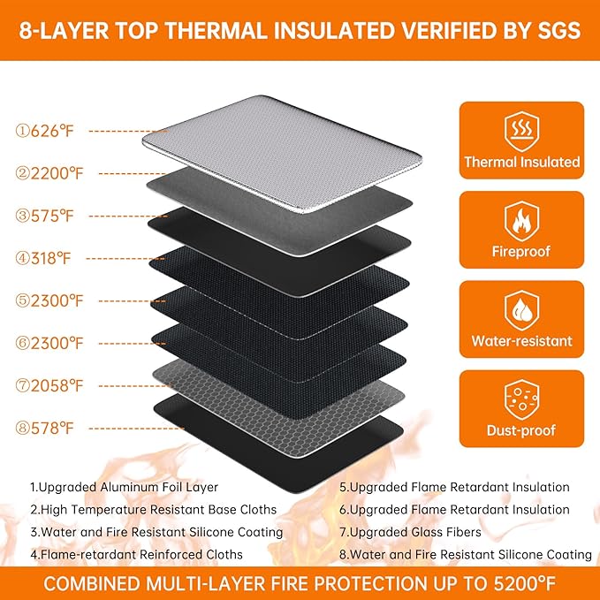 - 5200°F Fireproof Resistant Insulation Protection: DocSafe 5200°F fireproof document bags are made of 10mm premium fire-retardant, non-itchy silicone-coated fiberglass, thickened fireproof aluminum foil which can stands up against fire and passed the UL classified and SGS TEST (UL-94 VTM-0 Burning Test). The multi-layer material protection of the fireproof bag can withstand temperatures of up to 5200℉, completely protecting documents and valuables from fire damage
