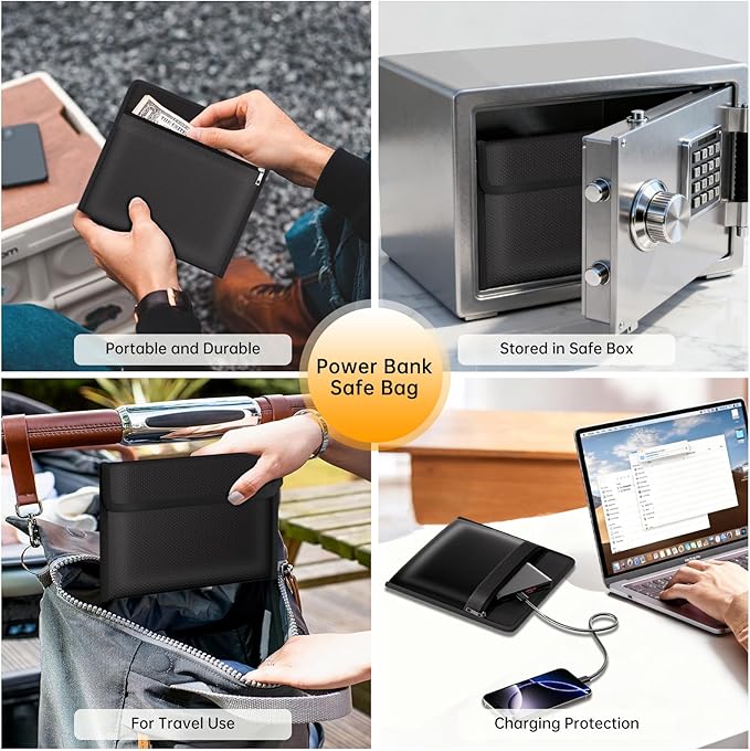 - Home Office Travel Safe: When you're traveling, the risk of a power bank exploding while charging cannot be overlooked. This is where our fireproof bag comes into play. If the power bank ignites or explodes inside the bag, its sturdy structure can temporarily contain the flames, high temperatures—ensuring optimal protection for your charging safety. Nothing is completely foolproof, but added protection is always a good idea