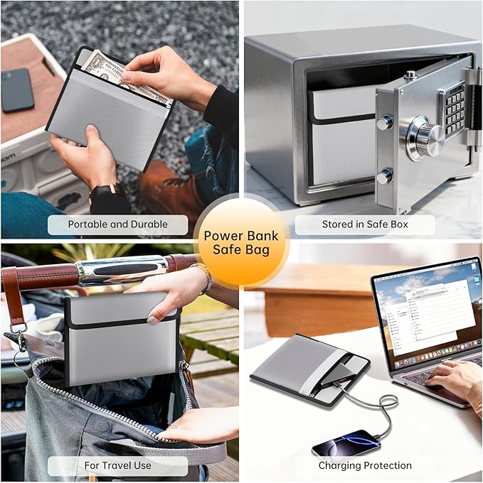 - Home Office Travel Safe: When you're traveling, the risk of a power bank exploding while charging cannot be overlooked. This is where our fireproof bag comes into play. If the power bank ignites or explodes inside the bag, its sturdy structure can temporarily contain the flames, high temperatures—ensuring optimal protection for your charging safety. Nothing is completely foolproof, but added protection is always a good idea