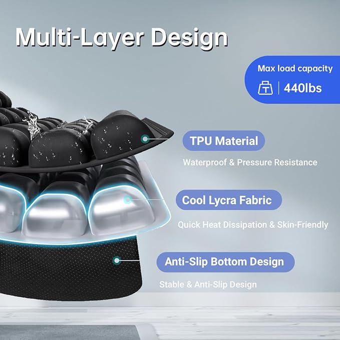 - 【Breathable and Durable Design】The JNHEST travel seat cushion features premium TPU material offering durability, breathability, and hypoallergenic comfort. The airflow channel design between those airbags effectively reduces heat buildup to keep your hips cool.