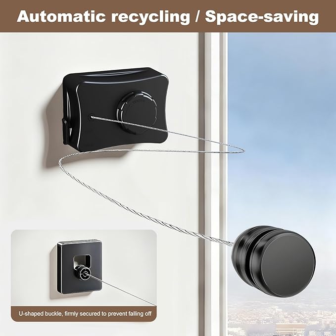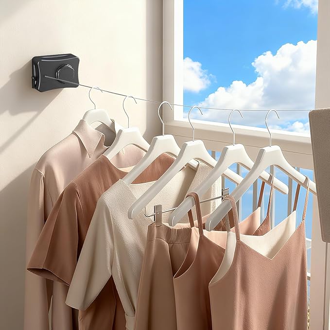 - Space-Saving & Retractable Design:When not in use, the line retracts completely into its compact ABS housing. It stays discreet and out of the way—ideal for balconies, bathrooms, RVs, and small apartments.