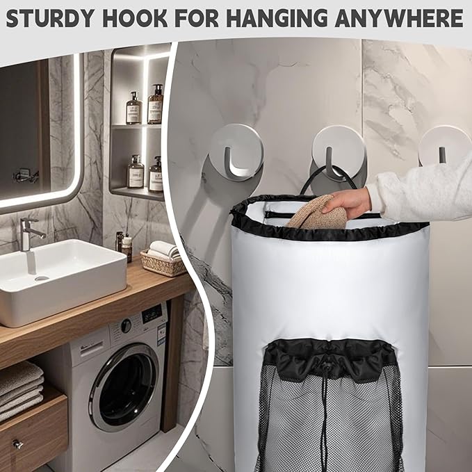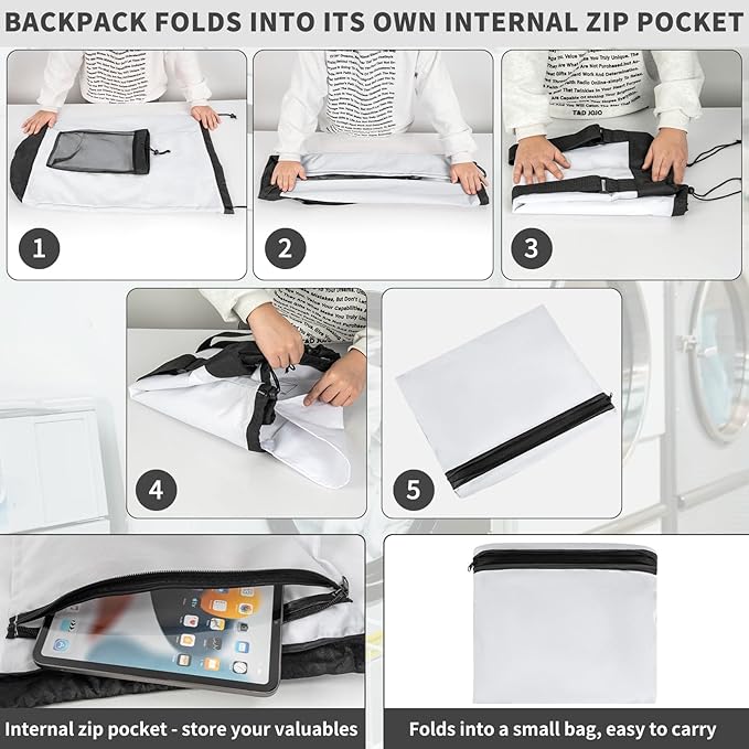 Laundry Bag Backpack with 3 Sizes Mesh Wash Bags and Shoulder Straps Foldable Clothes Hamper Bag with Drawstring Closure for College, Apartment, Laundromat (White)