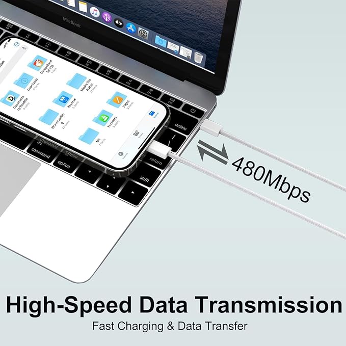 - [60W iPhone 17 Fast Charger Cable] The 6FT 60W iPhone 17/16/15 Pro Max charger woven cable supports PD 3.0 fast charging and the reversible design of the cable allows for easy insertion, the feature tangle-free USB cable with aluminum connector has a stronger conectivity and up to 480Mbps data synchronization. The 6FT fast charger USB C charging cable length allows you charge your iPhone 17 and iPad models more easier and convenient.