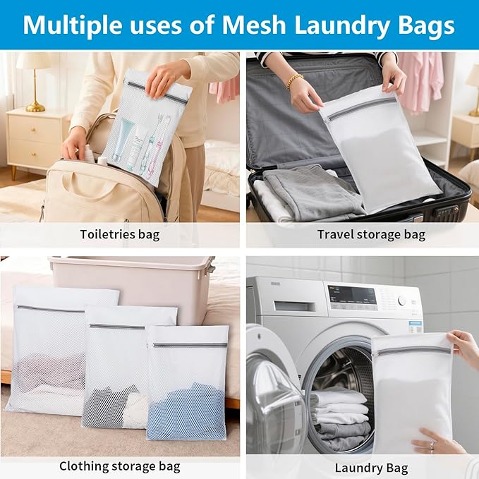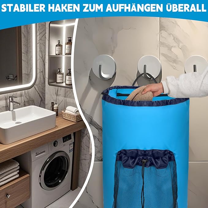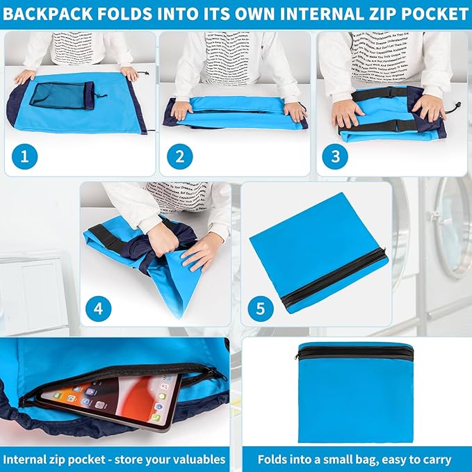 Laundry Bag Backpack with 3 Sizes Mesh Wash Bags and Shoulder Straps Foldable Clothes Hamper Bag with Drawstring Closure for College, Apartment, Laundromat (Blue)