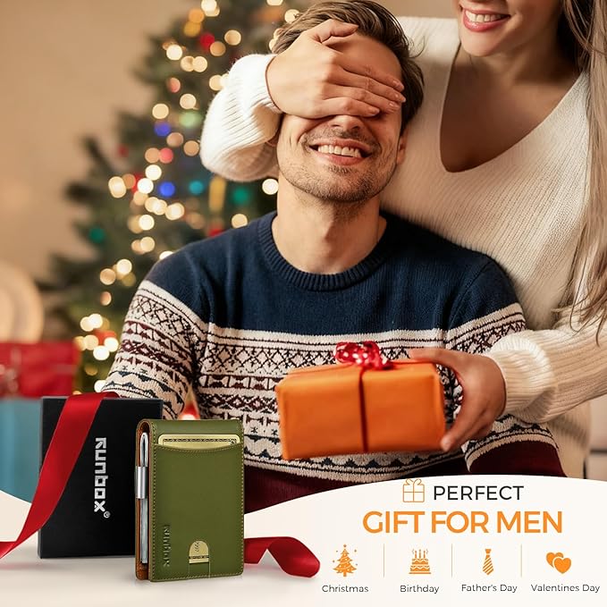 - GREAT GIFT IDEAS - This men's slim wallet comes in nice gift box packaging, is a perfect present for birthday, anniversaries, Father's Day, Christmas or just because, so you can easily gift it to your boyfriend, hubby, dad, friend and choose the color they may love most for their next wallet