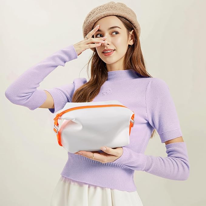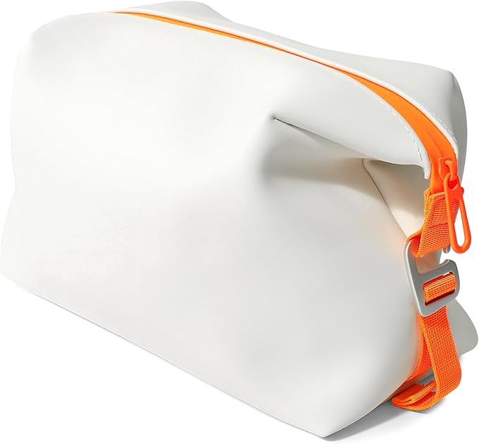 Vomgomfom 3L 6.5 Inch Silicone Toiletry Bag, Waterproof Leakproof Travel Cosmetic Organizer, Adjustable G-Buckle Compression Dopp Kit, Foldable Makeup Bag for Women & Men, White