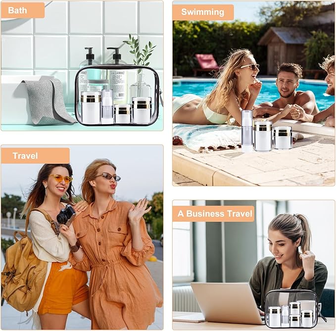- TRAVEL-FRIENDLY DESIGN: Lightweight and compact, these travel containers for toiletries are ideal for any trip. Whether you're heading out for a weekend getaway or a long vacation, our airless pump bottles travel with ease, ensuring your favorite products are always within reach