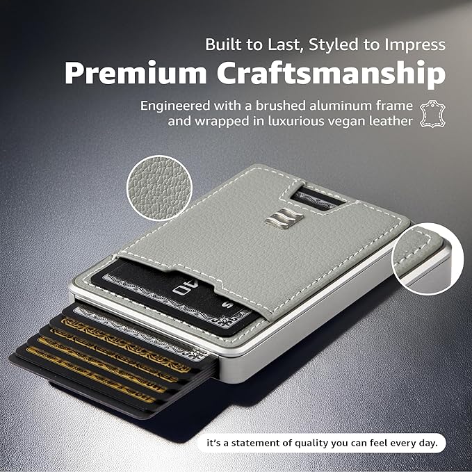 - PREMIUM MATERIALS, BUILT TO LAST 🛠️: Made with durable brushed aluminum and smooth vegan leather, this travel wallet is lightweight yet tough. Whether you need a men wallet, card wallet, or wallet for women, this piece elevates your everyday carry.