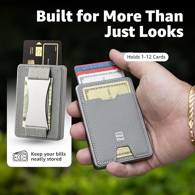 - QUICK ACCESS & SMART ORGANIZATION ⚡: Featuring an intuitive quick-access mechanism, this card holder wallet securely stores 1–12 cards and bills. It replaces your credit card holder, money clip, and outdated card wallet.