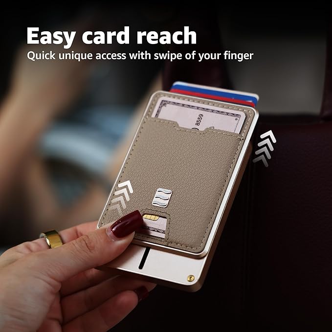 RFID Blocking Wallet, Minimalist Card Holder with Quick Access, Holds 1 to 12 Cards & Cash, Vegan Leather & Brushed Aluminum, Gift-Ready Packaging (Beige)