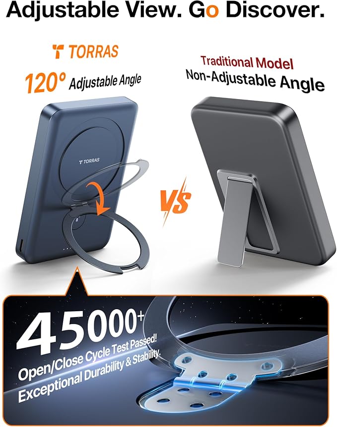 TORRAS EasyGo 10000mAh Magnetic Portable Charger Power Bank for iPhone, Fast Charging Travel Essential Wireless Battery Pack with Stand Compatible with Magsafe,17 Pro Max,Pro,16,15,14,13,12, Deep Blue