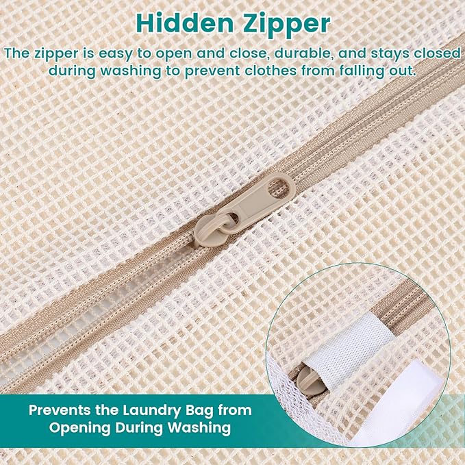 - STURDY HIDDEN ZIPPER——Our delicate laundry bag features sturdy and smooth hidden zipper design. During machine washing, clothes are not easy to run out and zippers are less damaged by friction, which effectively extends the service life of the laundry bag. Warm tips:Please note that to achieve better washing results, the capacity of clothes should not exceed 2/3 of the total capacity of each laundry bag.