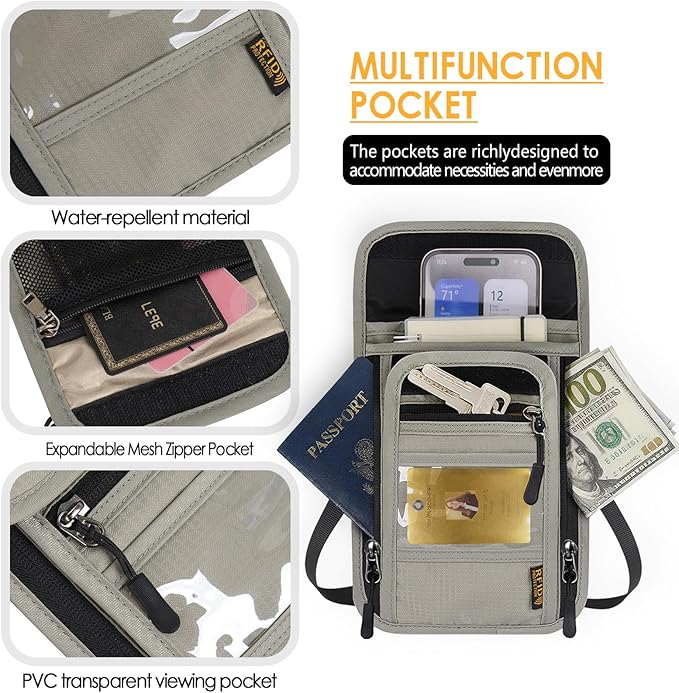 - 【MULTIPLE COMPARTMENTS FOR EASY ORGANIZATION】 Features multiple zippered pockets and mesh slots for passports, tickets, IDs, and cash. Keep your essentials neatly organized and easy to reach when you need them most.