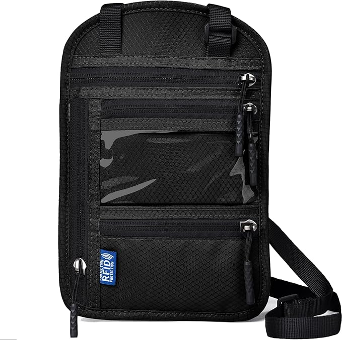 RFID Blocking Travel Neck Wallet–Hidden Passport Holder & Anti-Theft Money Pouch for Men & Women, Lightweight Concealed Travel Organizer with Adjustable Strap Secure Document