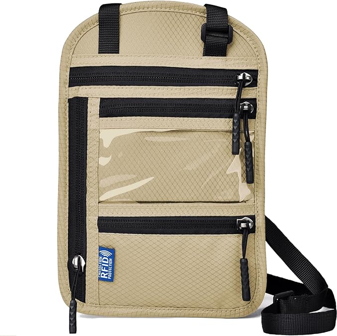 RFID Blocking Travel Neck Wallet–Hidden Passport Holder & Anti-Theft Money Pouch for Men & Women, Lightweight Concealed Travel Organizer with Adjustable Strap Secure Document