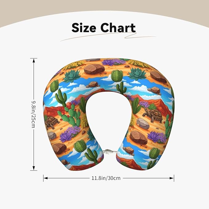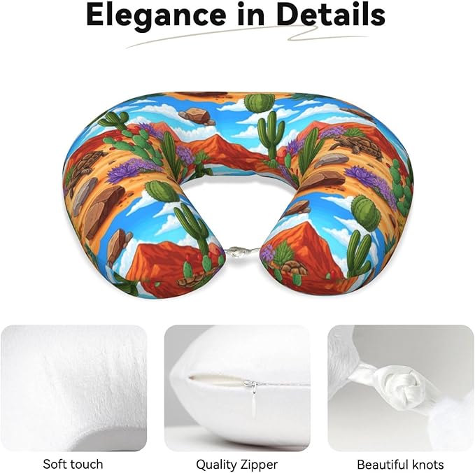 Comfortable Memory Foam Neck Pillow Desert Tortoise Cactus, Travel U Shaped Airplane/Car/Flight Pillows with Removable Zipper Cover, Chin Head Neck Support Cushion