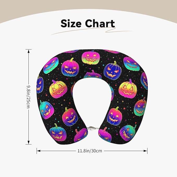 Neck Travel Pillow, Breathable Memory Foam Chin & Head Support Cushion Halloween Trippy Neon Pumpkin Skull for Airplane Car Sleeping Rest
