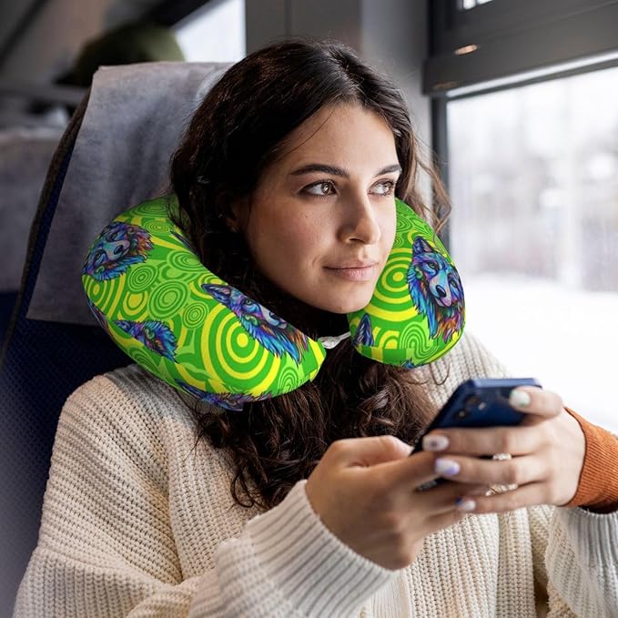 Neck Pillows for Travel Tie Dye German Shepherd Dog Green, Women and Men Airplane Car Pillow, Neck Support U Shaped Pillow for Rest Pain Relief Sleeping