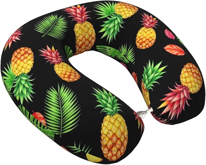 Comfortable Memory Foam Travel Neck Pillow, Funny Chin/Head Cushion Supporting Airplane Car Pillows Watercolor Pineapple Tropical Palm Leaves for Sleeping Outdoors Travel Office