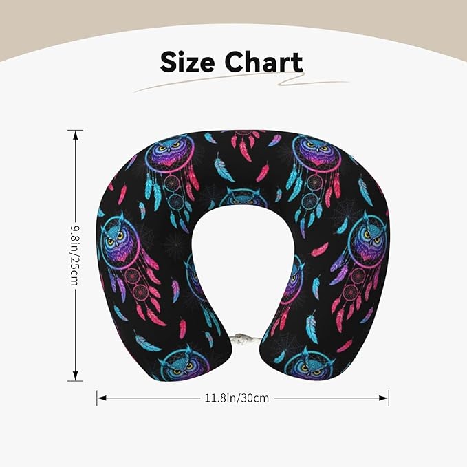Neck Pillow Memory Foam Travel Pillows Comfortable for Airplane Flight Car Travel Office Nap and Sleeping, Funny Cushion for Head Shoulder Boho Owl Dream Catcher