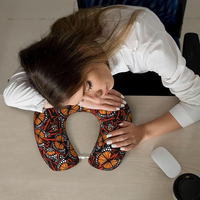 Travel Pillow for Boys and Girls, Comfortable Neck Chin Head Support Cushion Orange Monarch Butterflies, Comfortable for Airplanes Car Sleeping Rest