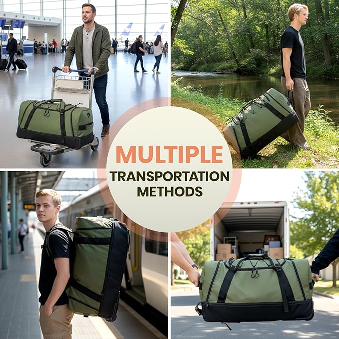 - Stable Travel Assistant: This duffel bag redefines design with innovation, upgrading the support structure to prevent deformation.Why is it more trustworthy? Its triple-reinforced bottom ensures firmness when fully loaded, solving common sagging and dragging issues. Ergonomically adjustable handle connect to the reinforced base, enhancing load-bearing capacity, shifting the center of gravity upward, and distributing weight for effortless. Let you easily pull in the most comfortable posture