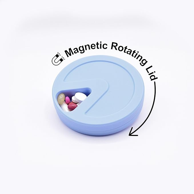 - CONVENIENT: The lid rotates smoothly and indexes automatically to each pocket so that you can easily pour out the day's pills. The lid can be removed for filling simply by turning it halfway between the pockets and lifting. The lid automatically centers and reattaches itself via the magnets.