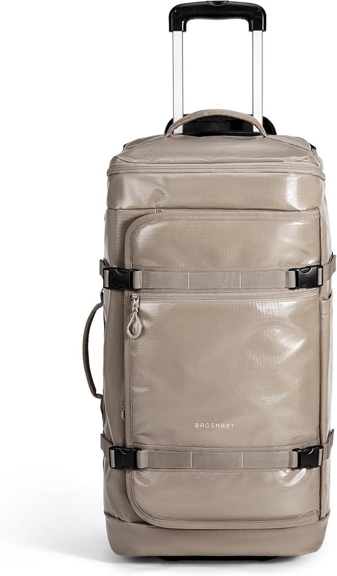 BAGSMART 70L Rolling Duffle Bag with Wheels, Large Travel Duffel Luggage Bag for Men, Water Repellent Heavy Duty for Travel Camp, Camel