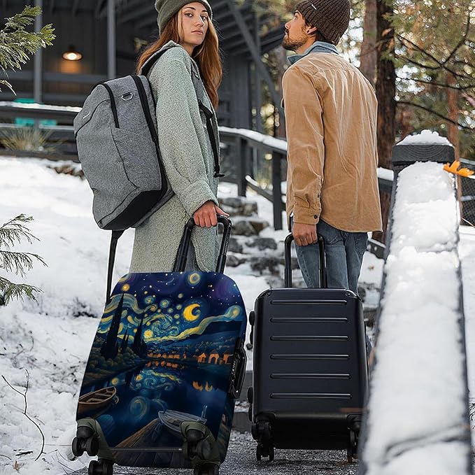 - Artistic Starry Night Design: Inspired by Van Gogh’s masterpiece, this luggage cover turns your suitcase into a piece of art, adding sophistication to your travel look.