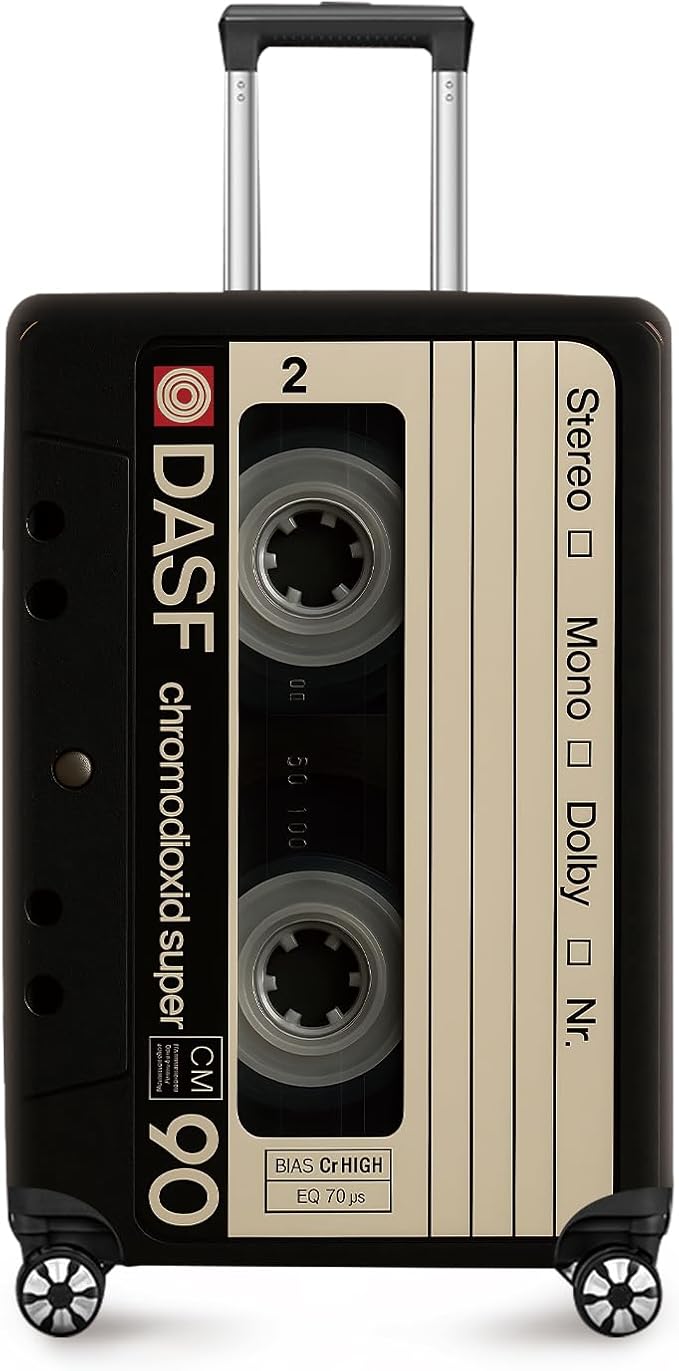 - Vintage Music Theme: Retro cassette tape print brings nostalgic charm to your luggage, ideal for music lovers.