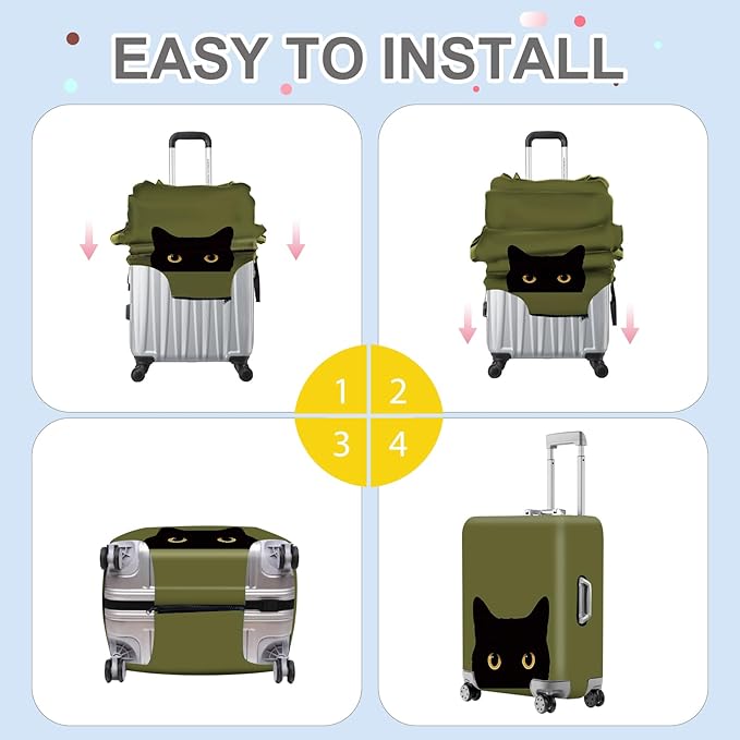 - Adorable Cat Design: Features a playful peeking black cat with bright eyes, adding charm and fun to your luggage.
