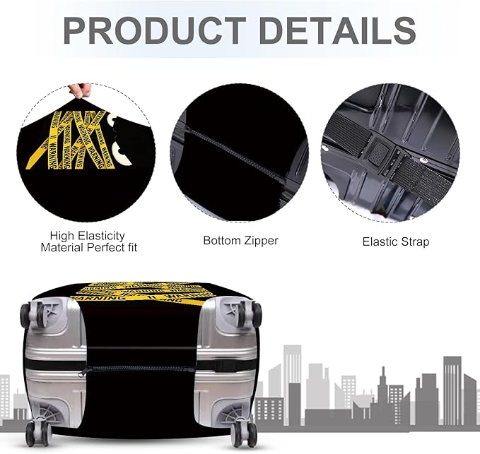 ANNA QUEEN Warning Tape Luggage Cover, Funny Eyes and Yellow Tape Design Suitcase Protector, Stretchable Washable Travel Sleeve for 20-22 Inch Luggage