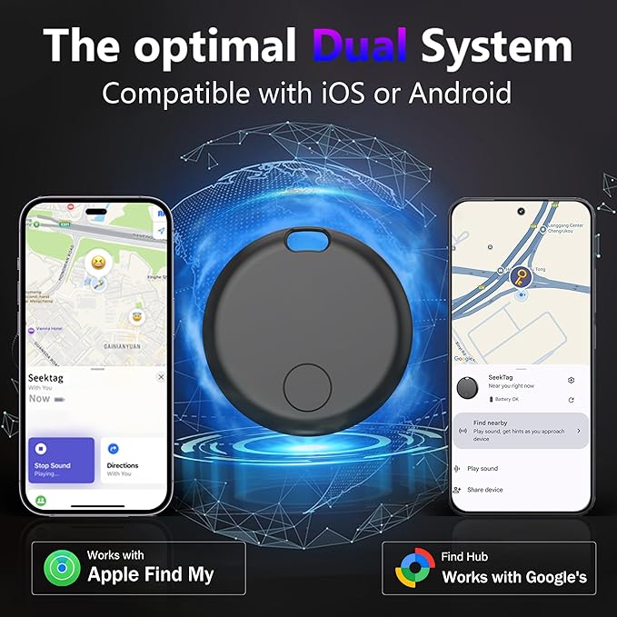 - đăDual-System CompatibilityăWorks with both Appleâs Find My network and Googleâs Find My Device network. Whether you use an iPhone or an Android phone, you can easily track your items anywhere in the worldâno ecosystem limits.